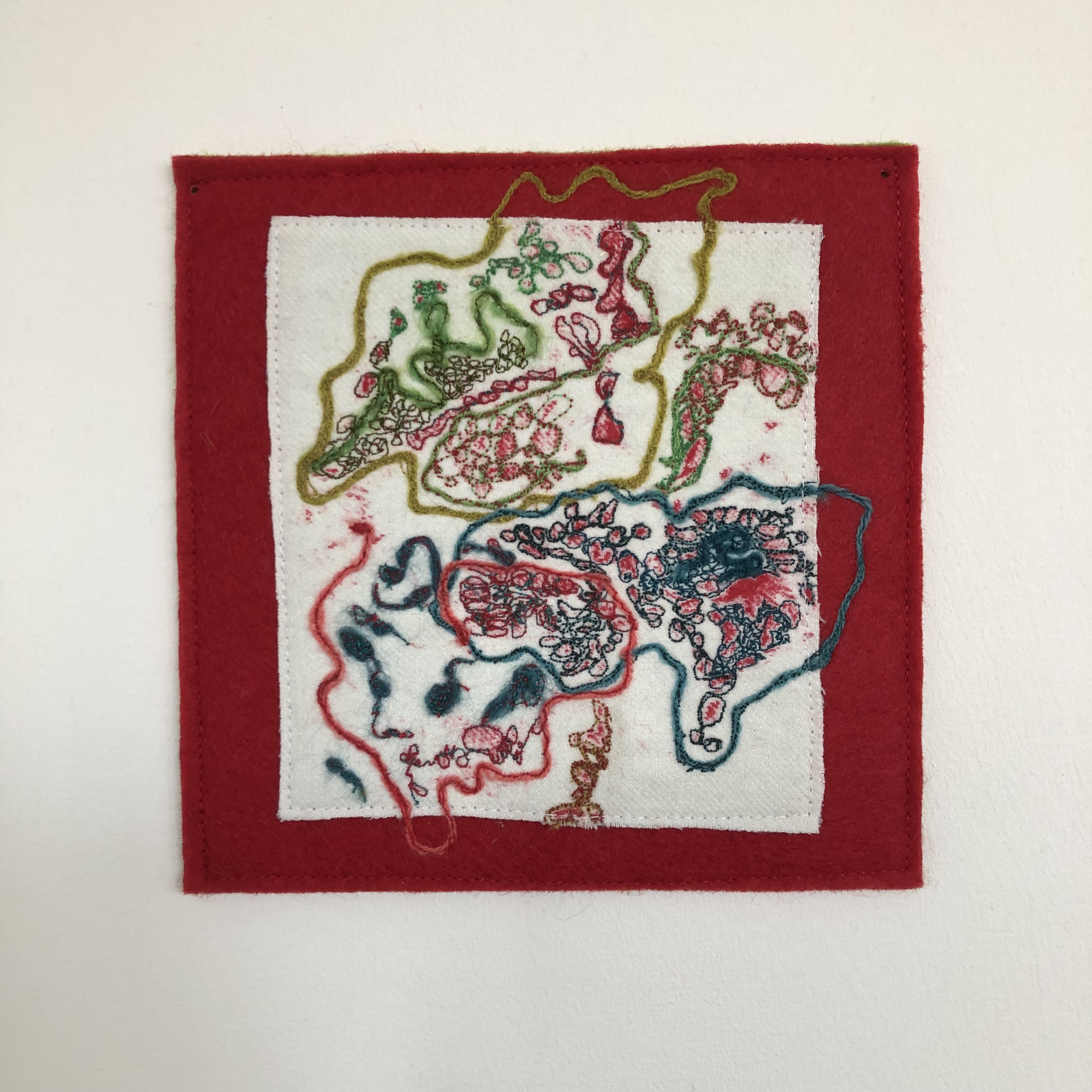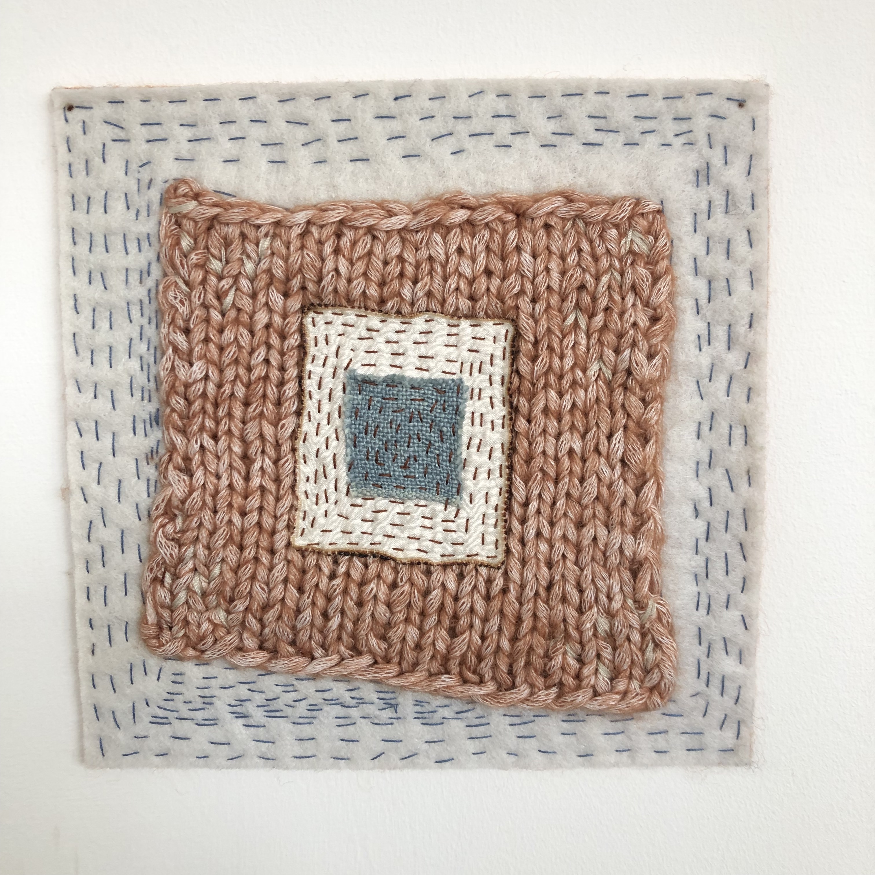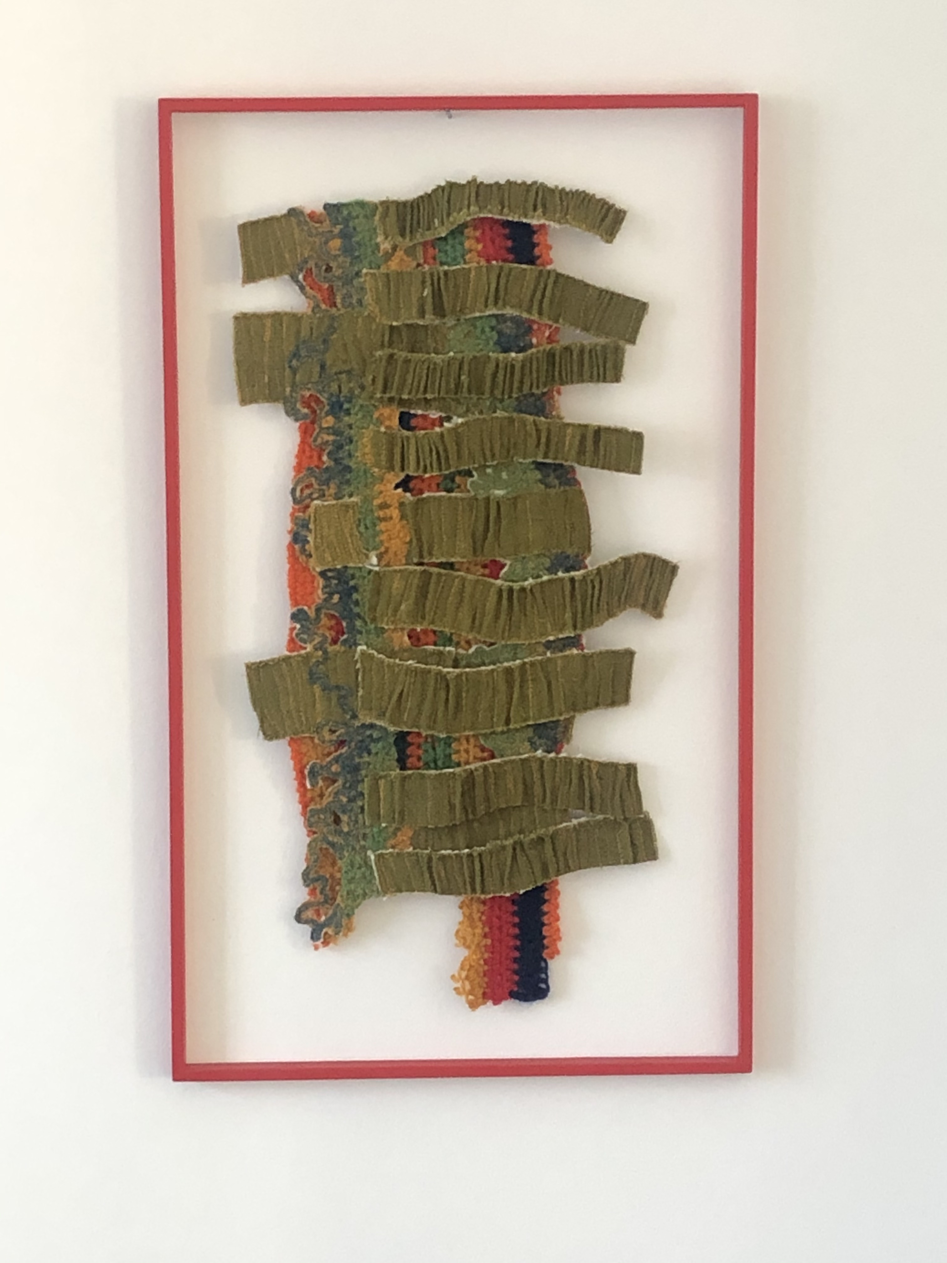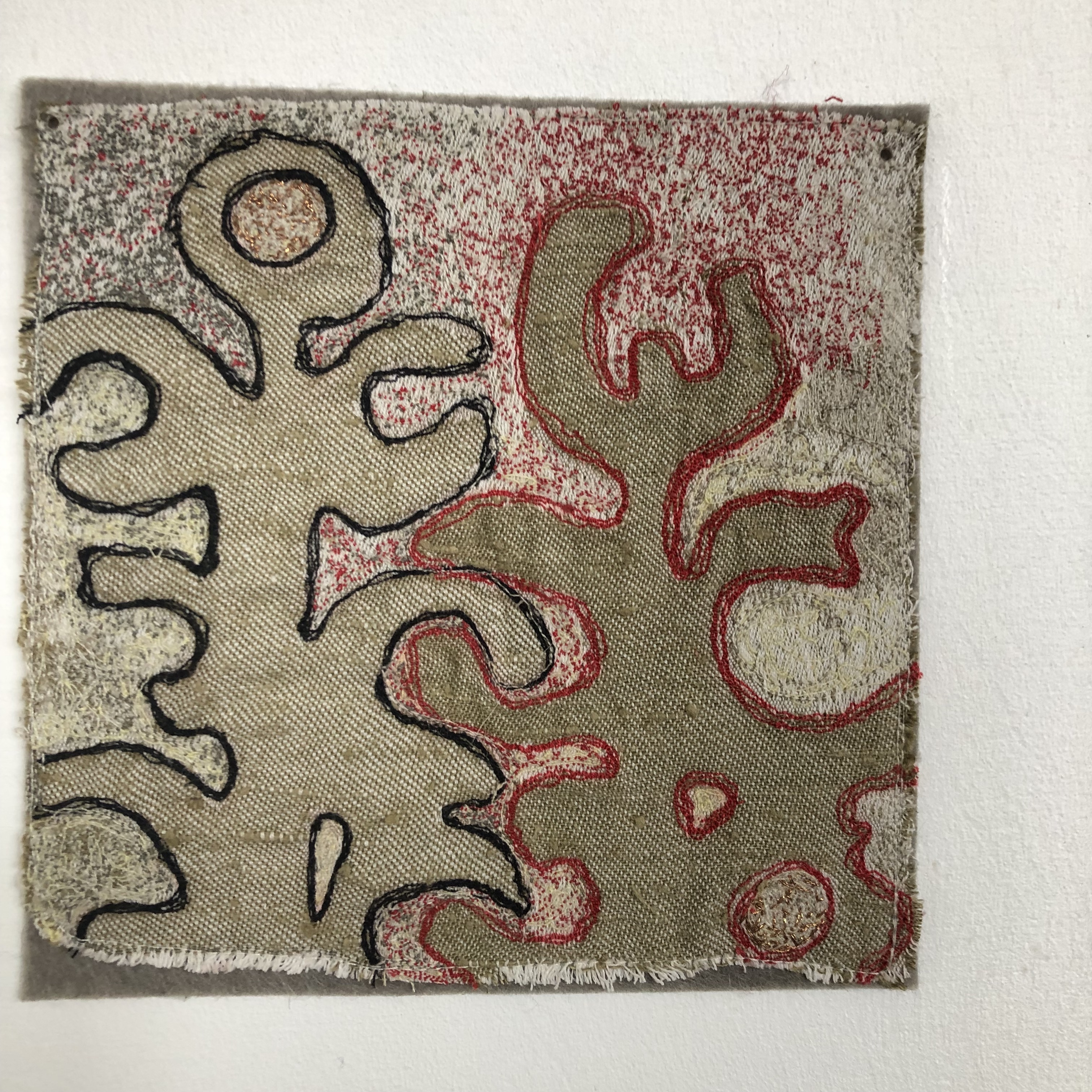 Sinds een paar jaar maak ik naast vrij werk ook abstracte composities in opdracht waarbij textiel van dierbaren centraal staat; herinneringstextielkunst.